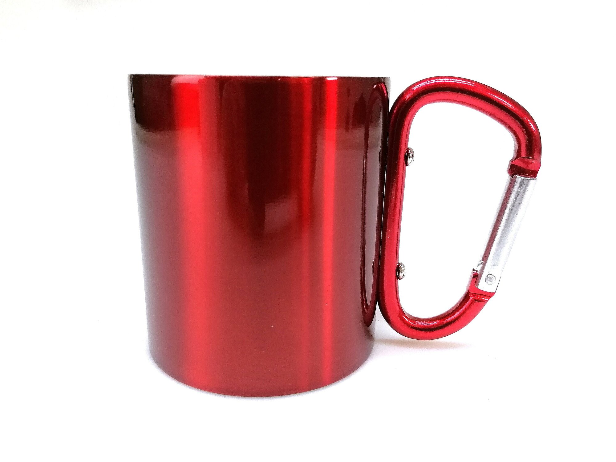 kubek metalowy, turystyczny, z karabińczykiem, czerwony; 8x7cm przeczytaj całość