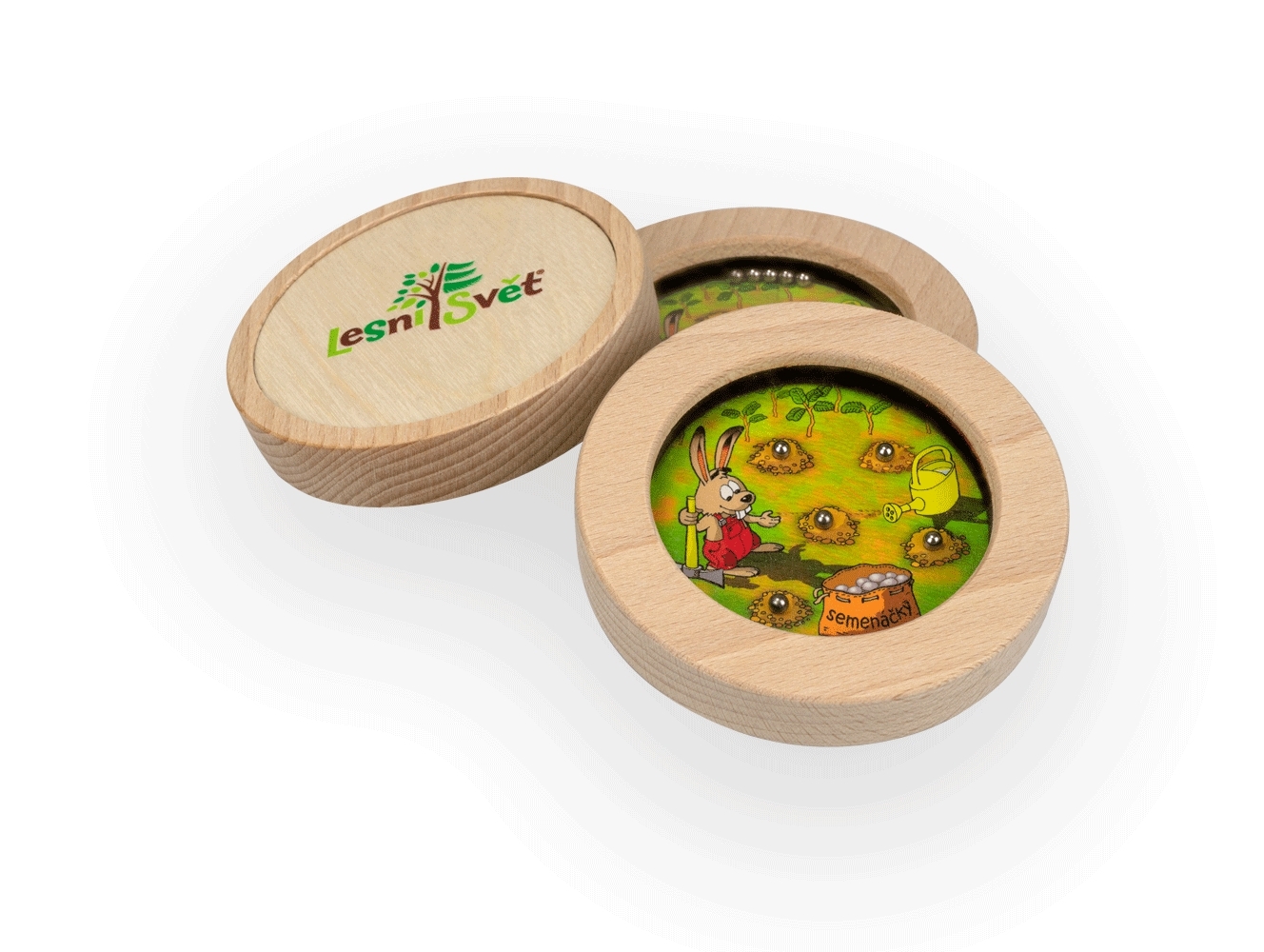 Potrénujte motoriku a pomozte zajíci zasadit všechna semínka. Kapesní kuličkolam vyrábí u nás v dílně české ruce z kvalitního českého certifikovaného dřeva. Balení obsahuje 1 ks kuličkolamu o průměru 9,5 cm vyrobeného z masivu a překližky s 5 důlky a 5 kovovými kuličkami. Nemá ochranný obal....