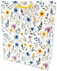 Torebka ozdobna matowa 26x32x12cm Kwiatuszki