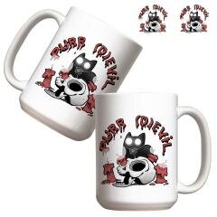 Purr (D)Evil - kawał kota z piekła rodem! Gdy Twój poranek potrzebuje mocy... i może odrobiny chaosu. Kubek idealny dla tych, co zamiast ,,miau" mówią ,,muahahaha". Pojemność: 440ml Wysokość: 120 mm Średnica: 85 mm Materiał: ceramika przeczytaj całość