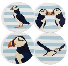 Oto subtelne, artystyczne RSPB Podkładki pod kubek ceramiczne 4 szt. - Maskonury (Puffin Blue) z motywem sympatycznego maskonura (puffina). Ten czteroelementowy zestaw zachwyca delikatnym, morskim tłem i misternie wykonanymi grafikami, które łączą estetykę z praktycznym zastosowaniem.Zestaw...
