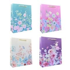 Torebka prezentowa uniwersalna L Kwiaty brokat mix