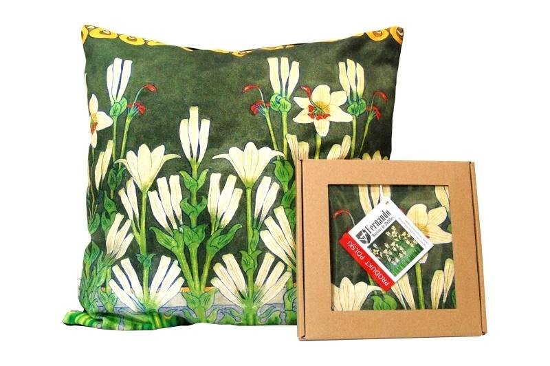 Poszewka na poduszkę Jasiek - z tyłem w kolorze ciemnego granatu, zadrukowana oryginalną, niepowtarzalną grafiką w pięknych barwach, przedstawiającą fragment polichromii autorstwa Stanisława Wyspiańskiego, znajdującej się w bazylice Franciszkanów w Krakowie.Uszyta w polskiej pracowni, z grubej...