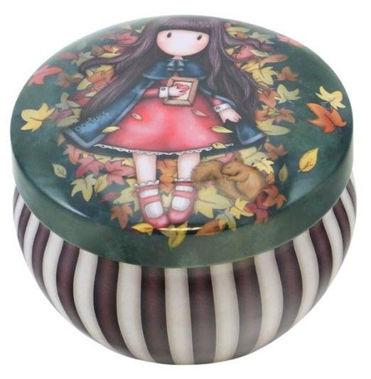 Blaszane Pudełko - Gorjuss - Autumn Leaves. Piękne blaszane pudełko ozdobione uroczą grafiką jesiennych liści w rubinowych, kasztanowych i złotych odcieniach. Przechowuj swoje skarby w tym eleganckim blaszanym pudełku. Piękne kolory podkreślą jego walory zarówno na zewnątrz jak i wewnątrz. Jest to idealne rozwiązanie do przechowywania biżuterii, przyborów do szycia czy słodyczy.