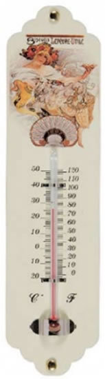 Teploměr s motivem Alfonse Muchy balený v papírové krabičce przeczytaj całość