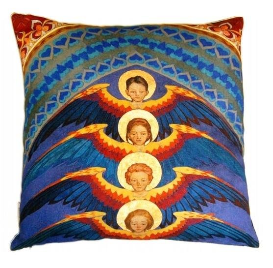 Poszewka na poduszkę Jasiek - z tyłem w kolorze ciemnego granatu, zadrukowana oryginalną, niepowtarzalną grafiką w pięknych barwach, przedstawiającą fragment polichromii autorstwa Tadeusza Popiela, znajdującej się w bazylice Franciszkanów w Krakowie. Uszyta w polskiej pracowni, z grubej...