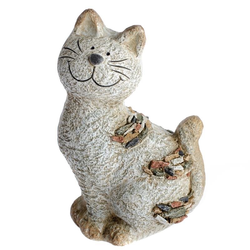 Zahradní okrasná kočka s kamínky 28,5 cm