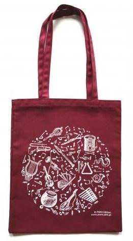 Torba płócienna z instrumentami w kolorze bordowym. Posiada długie uszy. przeczytaj całość