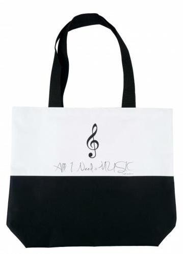 Elegancka torba na ramię, czarno-biała, z nadrukiem klucza wiolinowego po obu stronach, o wymiarach 45 x 37 x 12 cm. przeczytaj całość