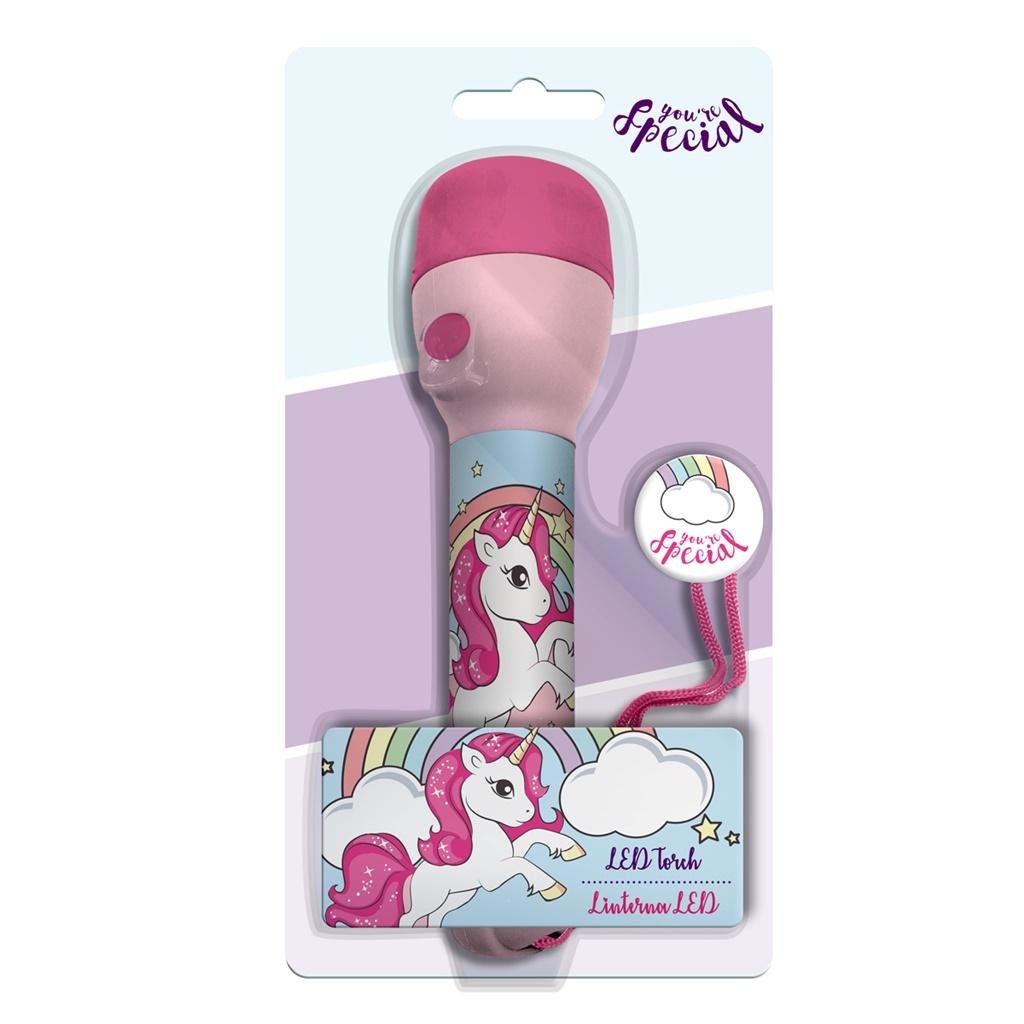 - Poręczna latarka LED ozdobiona wizerunkiem Jednorożca.