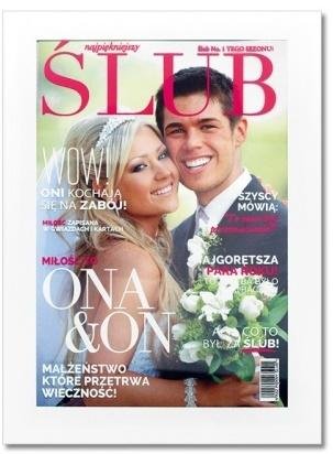 Oryginalny i elegencki prezent Ślubny- Ramka Harnony.Wystarczy wstawić zdjęcie i jako wyjątkowa Para Młoda pojawicie się na okładce specialnego wydania luksusowego czasopisma dla nowożeńców.Szklana ramka zapakowana w estetyczne, kolorowe pudełko.Format ramki : 18 x 24 cm przeczytaj całość