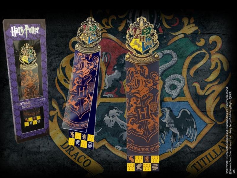 Stylová záložka pro fanoušky Harryho Pottera. Detailně zpracovaný ručně smaltovaný erb v horní částu záložky. Délka: 24x8 cm, Materiál: kov a PVC Oficiální licence Harry Potter Výrobce: britská společnost Noble Collection przeczytaj całość