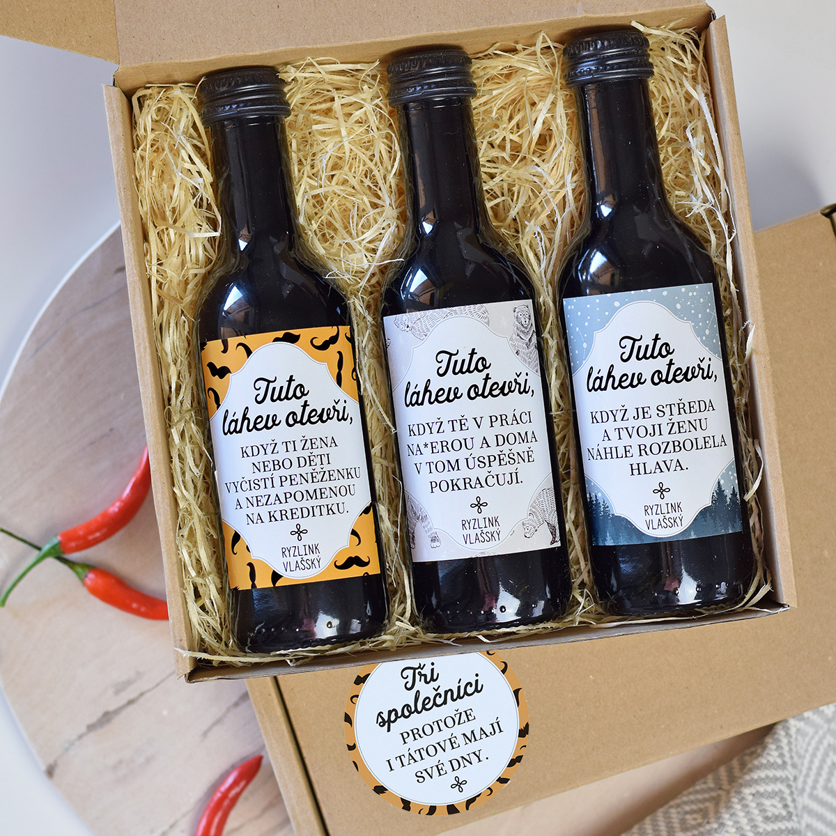 HOUSEDECOR Tři společníci - set vín pro TÁTU s dárkovou krabičkou a výplní