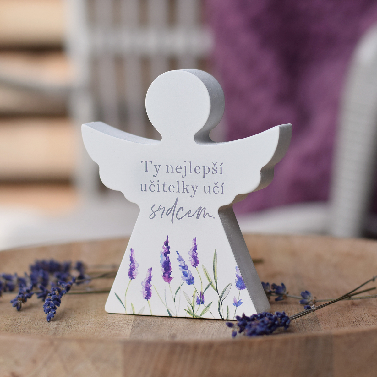 HOUSEDECOR Andílek s levandulí - Ty nejlepší učitelky učí srdcem.