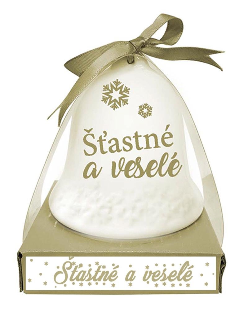 Keramický zvonek - Šťastné a Veselé 6,5cm