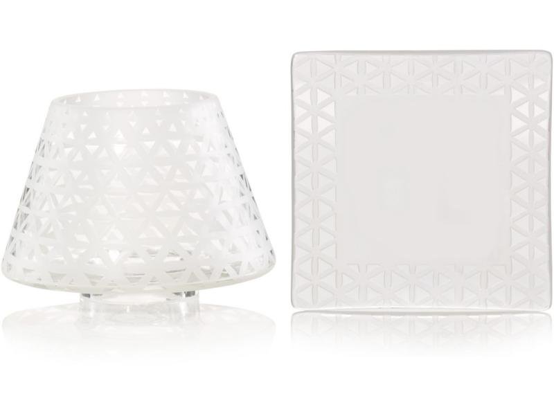 Jednoduše rozkošná kolekce doplňků od Yankee Candle. Prolamovaná keramika, sklo s atraktivním bílým vzorem, kovové detaily - tohle prostě nikdy nevyjde z módy!Sada malého talířku a stínítka. Hodí se na vonnou svíčku typu malý housewarmer. Chrání plamínek a zabraňuje plápolání. Plamen hoří zcela...