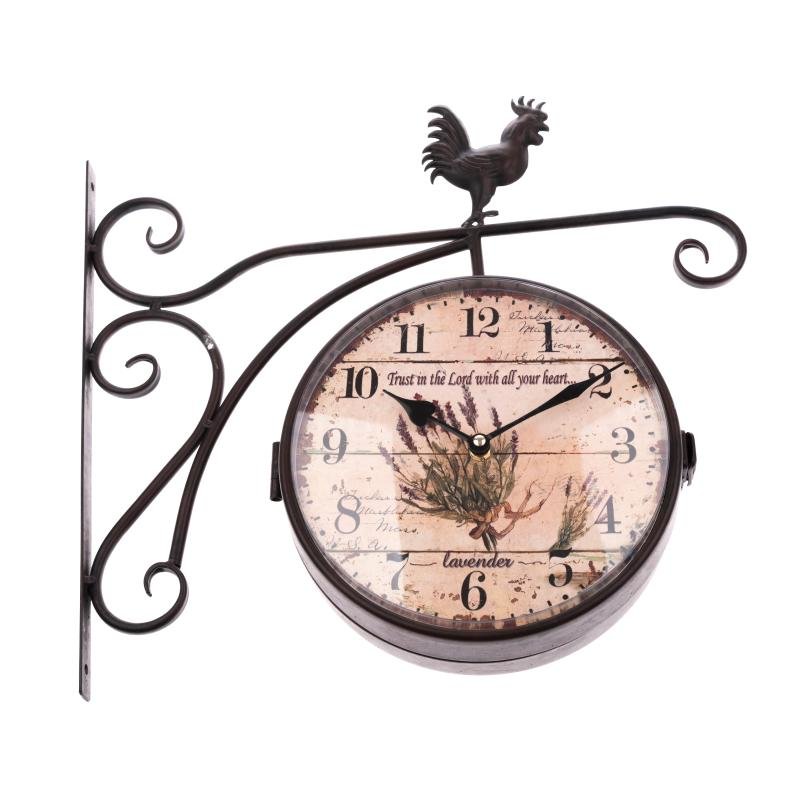 Oboustranné závěsné kovové hodiny - hnědé 42 cm