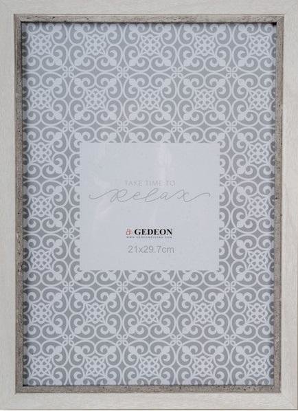 Ramka drewniana WD21 21x29,7 Gedeon format zdjęcia: 21x29,7 wymiary ramki: 32x23,5cmRamka w kolorze białym. Bliżej zdjęcia obwódka w kolorze kamienia.Ramka na większe zdjęcie bądź dyplom w formacie A4.Drewniana rama o grubości ok 2cm. Przód zabezpieczony szkłem, plecy ramki z płyty... przeczytaj całość