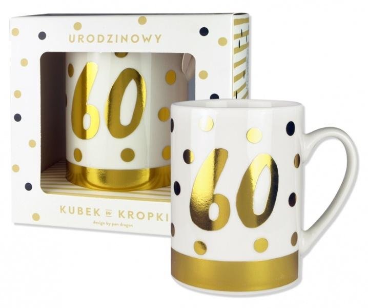Urodzinowy kubek w kropki zapakowany w eleganckie pudełko. przeczytaj całość