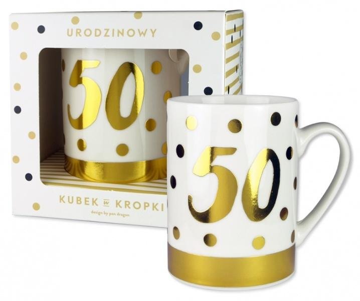 Urodzinowy kubek w kropki zapakowany w eleganckie pudełko. przeczytaj całość