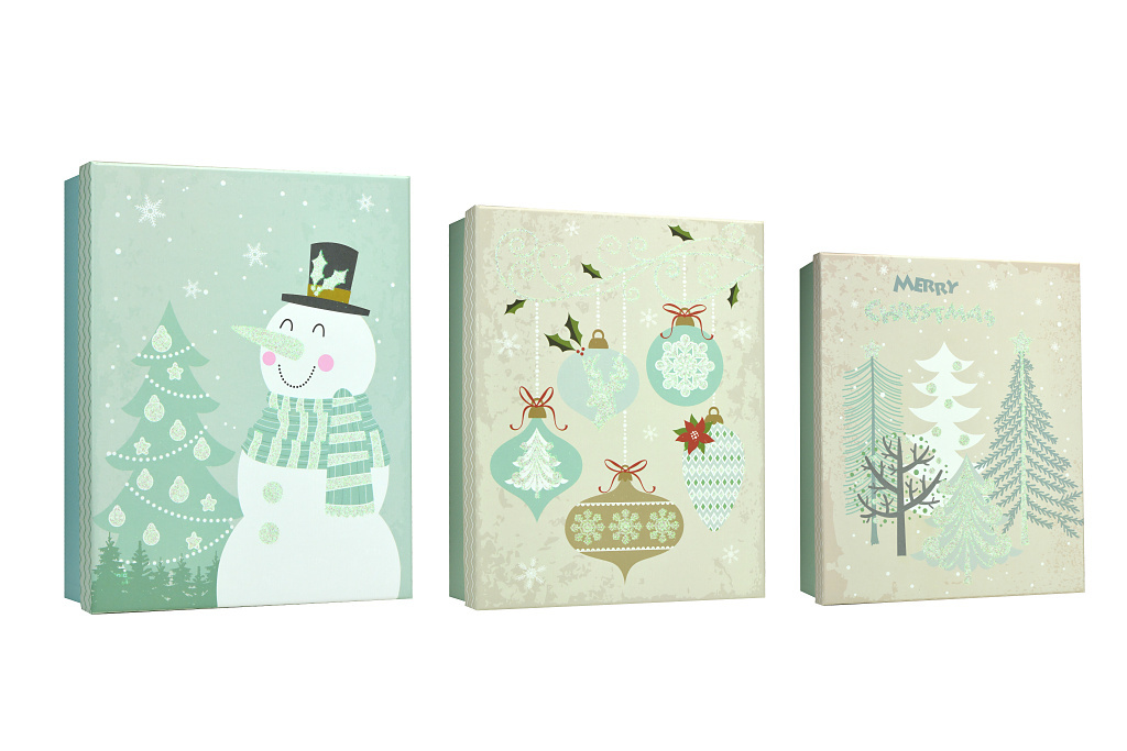 Vánoční dárkové krabice se třpytky - Sada 3 ks - Sněhulák
