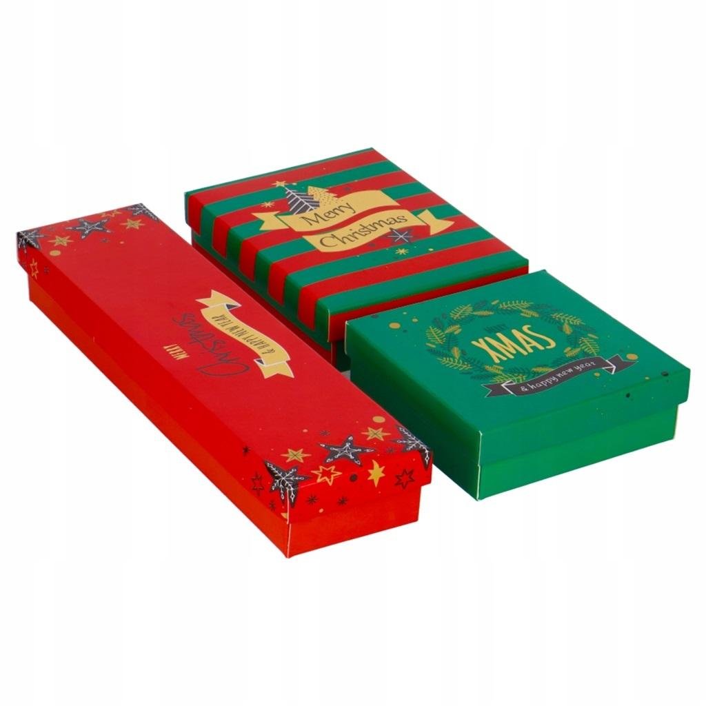 Zestaw pudełek prezentowych - 3 sztuki:wykonane z wysokiej jakości papieru,pokrywy ozdobione pięknym nadrukiem,elegancka świąteczna stylistyka,odpowiednie dla wszelkich prezentów świątecznych,zestaw 3 sztuki w różnych rozmiarach,odpowiedniej do wszelkich drobnych prezentów.Wymiary:pudełko L: 5,5...