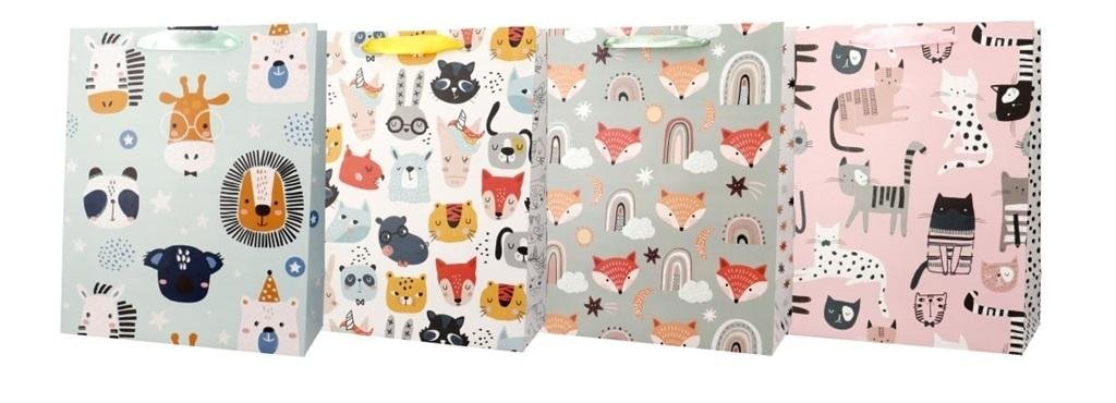 Zestaw oryginalnych toreb prezentowych wysokiej jakości. Wykonane z grubego papieru o gramaturze 210 gsm. Bardzo gustowne wzory. Rączka wykonana z tekstylnej tasiemki. Torby piękne - bardzo starannie wykonane. przeczytaj całość