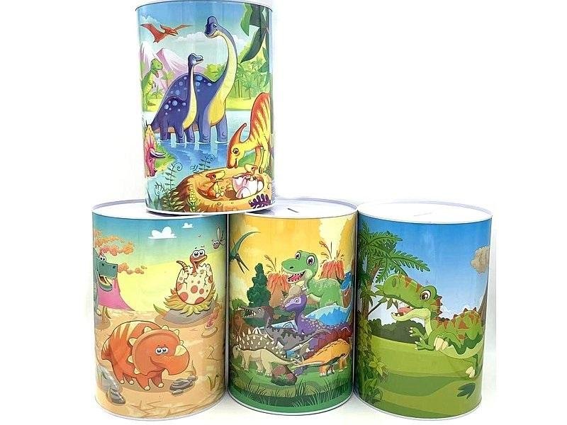 Miks wzorów, towar wysyłany losowo. Cena za sztukę.Skarbonka puszka metalowa Dinozaury. przeczytaj całość