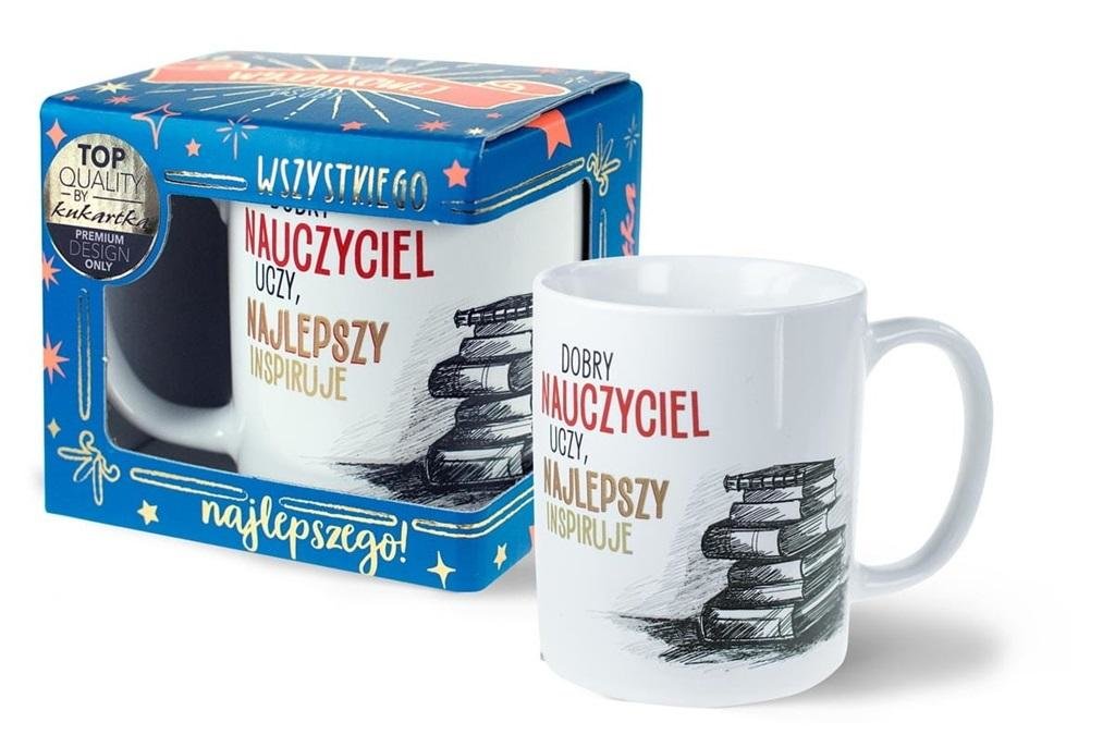 Kubek Premium "Najlepszy Nauczyciel inspiruje" Q 901 Kubki Premium Kukartka to połączenie elegancji, dobrego wzornictwa i jak zwykle - świetnych tekstów. Każdy kubek Premium to idealny pomysł na prezent na wyjątkową okazję - wzory są oryginalne, zdobione złotem i pakowane w piękne pudełeczko....