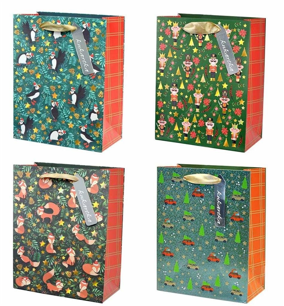 Najwyższej jakości torby papierowe, zdobione, matowe lub błyszczące (w zależności od wzoru), uchwyt z tasiemki. przeczytaj całość