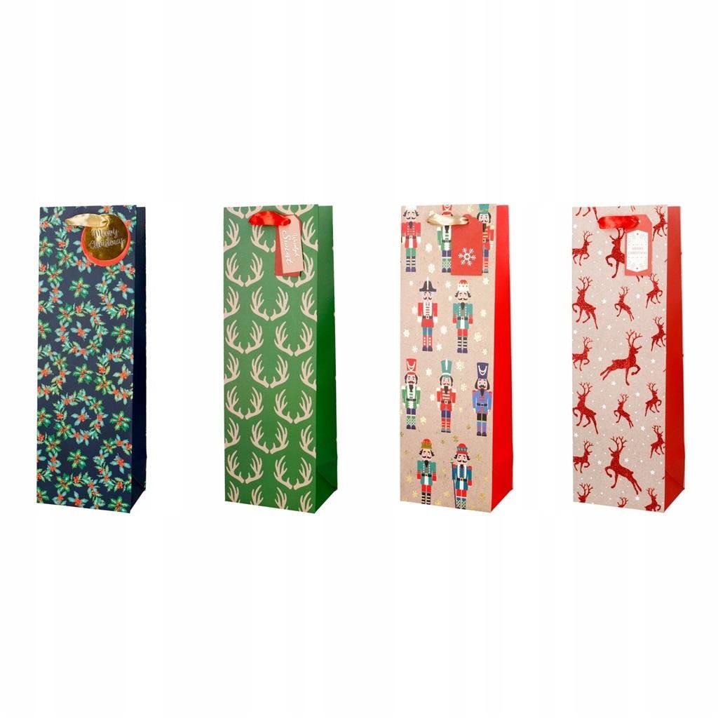 Torba prezentowa na butelkę 4 sztuki zestaw eleganckich toreb prezentowych wykonane z wysokiej jakości papieru o gramaturze 210 gsm o satynowym matowym wykończeniu satynowa rączka piękny świąteczny nadruk dodatkowo zdobione brokatem lub hot-stampingiem bardzo eleganckie... przeczytaj całość