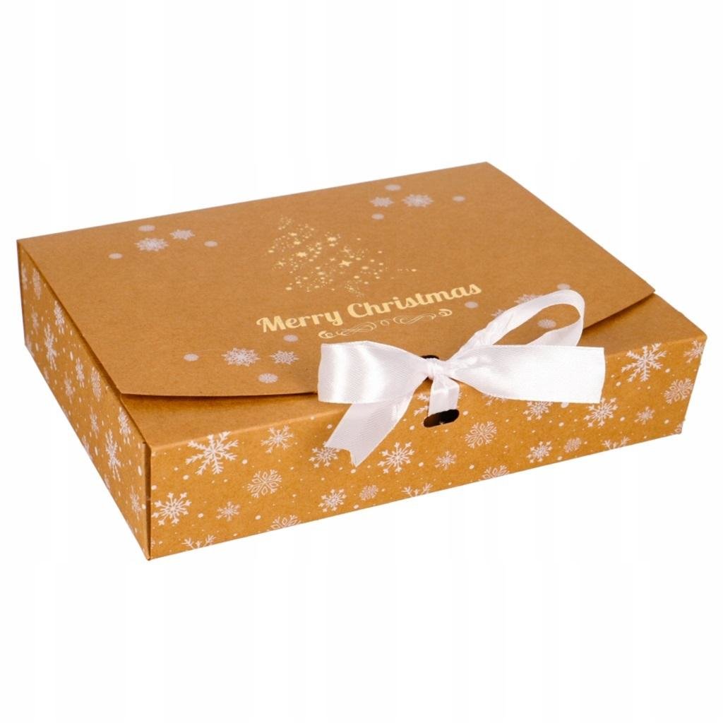 Pudełka na prezent składane 2szt. eleganckie pudełko na upominek wykonane z wysokiej jakości papieru craft wiązane tekstylną tasiemką wzór wykończony metalicznym nadrukiem odpowiednie na wszelkiego rodzaju prezenty rozmiarem idealnie będzie pasowało np na książkę świetnie też...