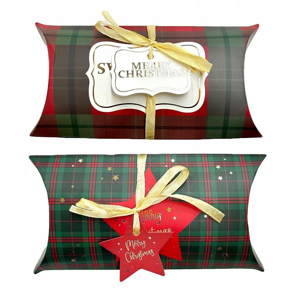Zestaw 2 pudełek składanych ze wstążka na mały upominek urocze pudełeczka przewiązane tasiemką z zawieszonym tagiem eleganckie wzory świąteczne doskonałe do zapakowania drobnych prezentów takich jak np. biżuteria, bony upominkowe, vouchery przewiązane tasiemką z tagiem do podpisania... przeczytaj całość