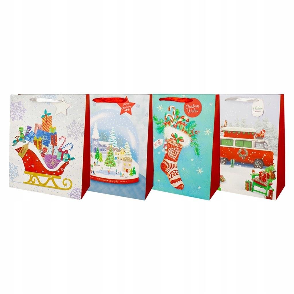 Torba prezentowa świąteczna 26x32cm torba prezentowa wykonana z wysokiej jakości papieru efektowne zdobienie brokatem tekstylna satynowa rączka eleganckie wzornictwo w świątecznym charakterze doskonałe na prezenty zarówno dla dorosłych i dzieci zestaw 4 szt. ( po 1 szt. ze wzoru... przeczytaj całość