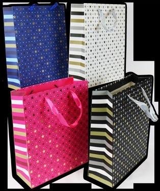 Mix wzorów, towar wysyłamy losowo. Cena dotyczy jednej sztuki.Torebka prezentowa. Gramatura papieru 210, torebka laminowana folią mat z dodatkowym uszlachetnieniem. Wielkość: 300x390x120 mm L przeczytaj całość