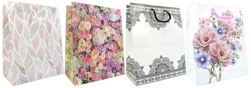 Opakowanie zbiorcze zawiera 12 sztuk, mix wzorów, zdjęcie poglądowe.Torba ozdobna 17,8x10,2x22,8cm (12szt) przeczytaj całość