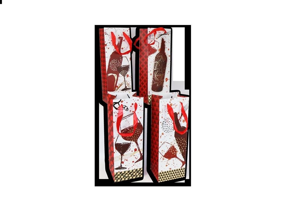 Mix wzorów, towar wysyłamy losowo. Cena dotyczy jednej sztuki.Torebka prezentowa na butelkę. Gramatura papieru 210, torebka laminowana folią mat z dodatkowym uszlachetnieniem. Wielkość: 300x390x120 mm" przeczytaj całość
