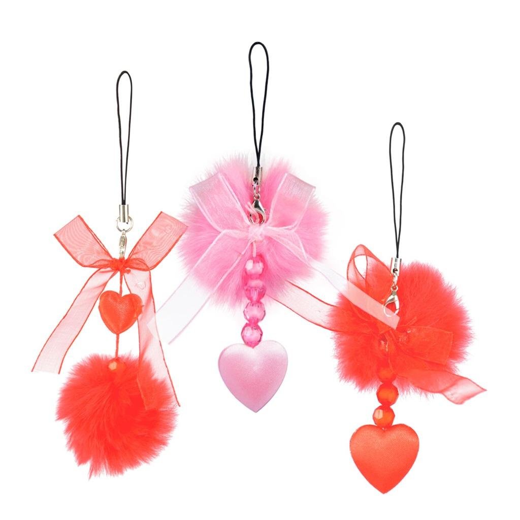 Czerwona lub różowa zawieszka pomponik o średnicy 5,5cm ozdobiona serduszkiem koralikami i wstążeczką. Długość całkowita ok 14cm. przeczytaj całość