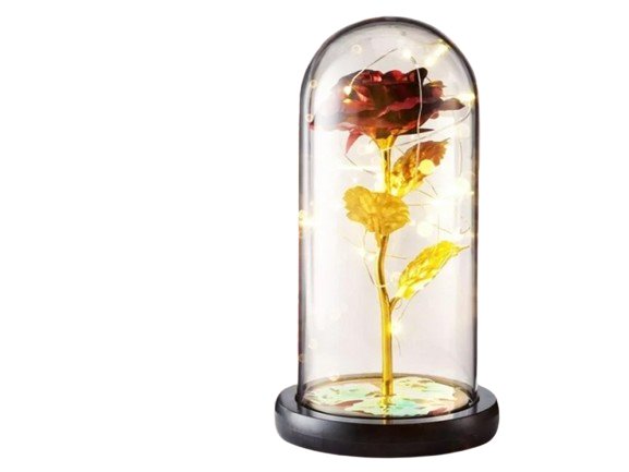 Róża jest symbolem miłości, dlatego podziel się tym pięknym uczuciem z bliskimi i podaruj im wieczną różę. To świetny prezent na różne okazje i będzie prezentem samym w sobie lub doskonałym dodatkiem. Nie chcesz kupować żywych kwiatów ani kolejnej czekolady? Podaruj czerwoną i złotą różę zamkniętą w szklanym naczyniu, która dodatkowo jest pięknie oświetlona światłami LED. Całość umieszczona jest na czarnym podwyższeniu, pod którym znajduje się miejsce na baterie (nie są dołączone). Szklana kopuła chroni kwiat przed kurzem i innymi uszkodzeniami. Złoto-czerwona róża doda obdarowanemu poczucia wyjątkowości, a jej blask będzie idealną dekoracją.