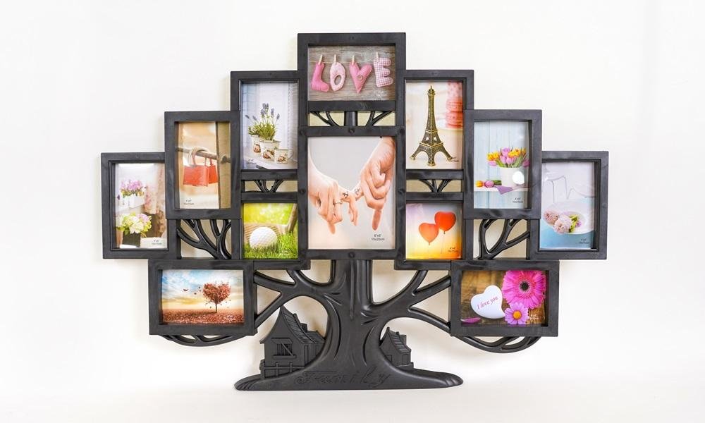Plastikowa ramka na 9 foto 10 x 15 cm, 2 foto 10 x 10 cm a 1 foto 15 x 20 cm, rozmiar ramki 82 x 58 cm, do zawieszenia przeczytaj całość