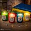 Dárkové balení 4 svíček s motivy bradavických kolejí a náramkem a přívěšky s maskoty jednotlivých kolejí. przeczytaj całość
