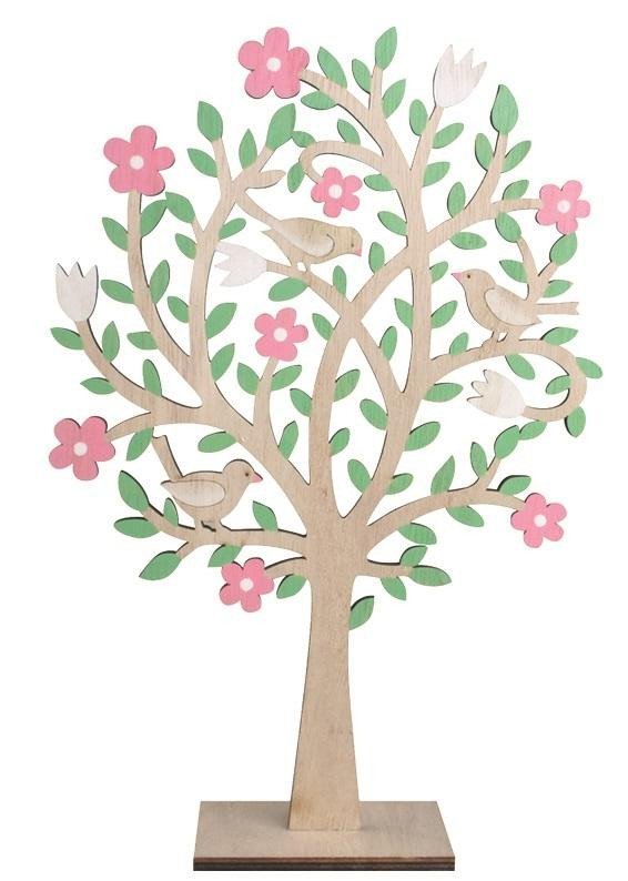 Strom dřevěný s růžovými květy na postavení 30 cm