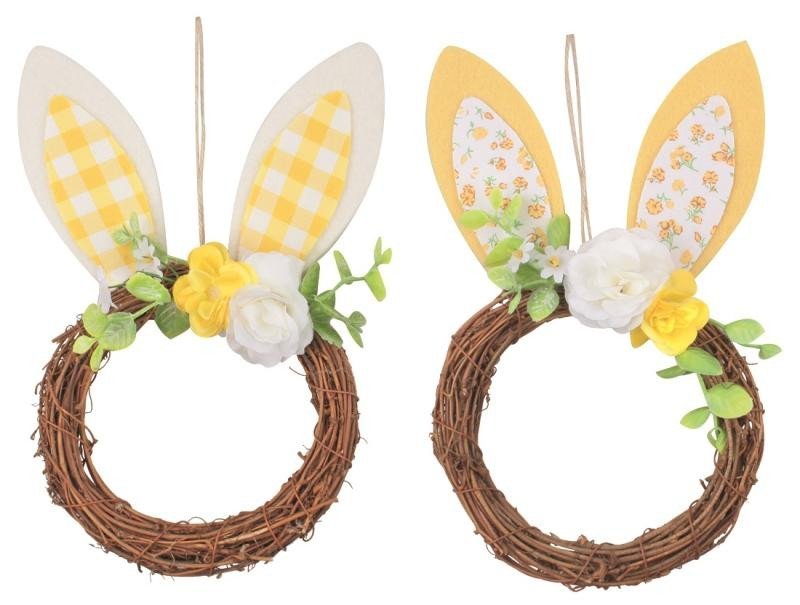 Věnec s filcovýma ušima 16 x 25 cm, žlutý