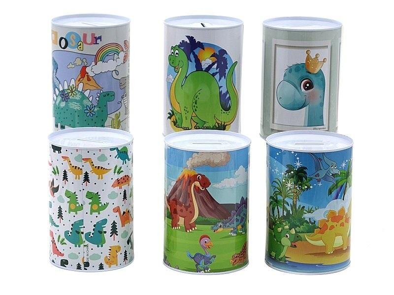 Skarbonka metalowa dinozaury 10x14cm MIX
