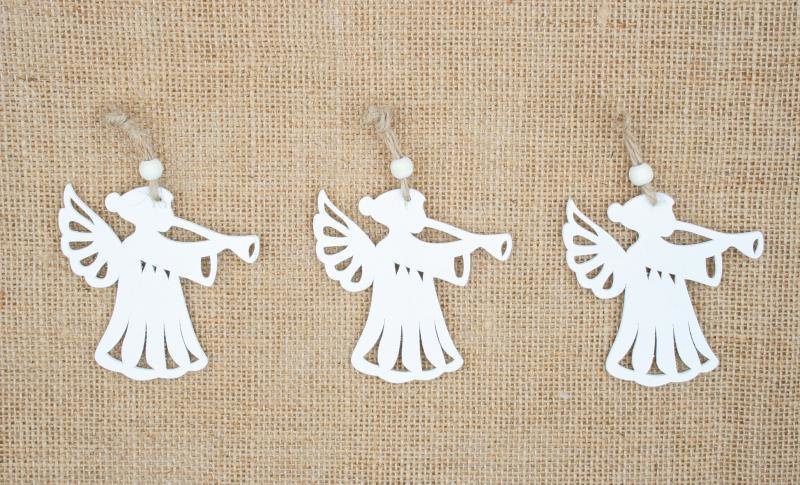 dekorace na zavěšení dřevěné Anděl dřevěný bílý 7 cm 3ks, na zavěšení przeczytaj całość