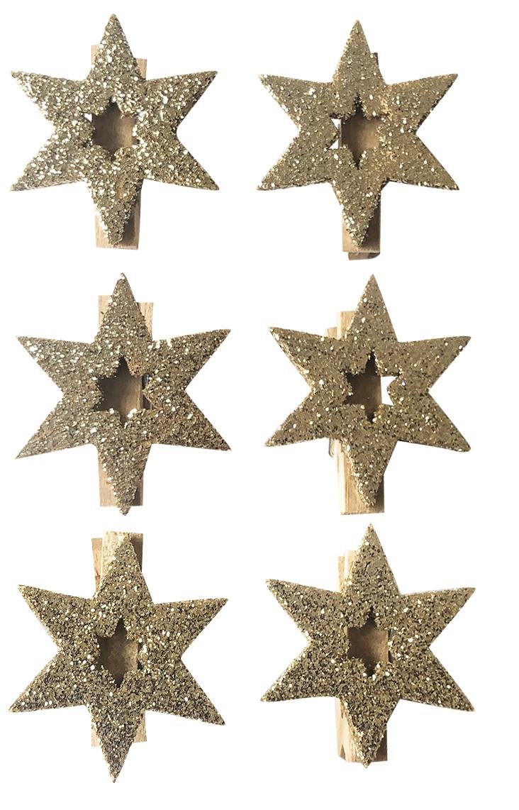 Hvězda zlatá na kolíčku 4 cm (6 ks)