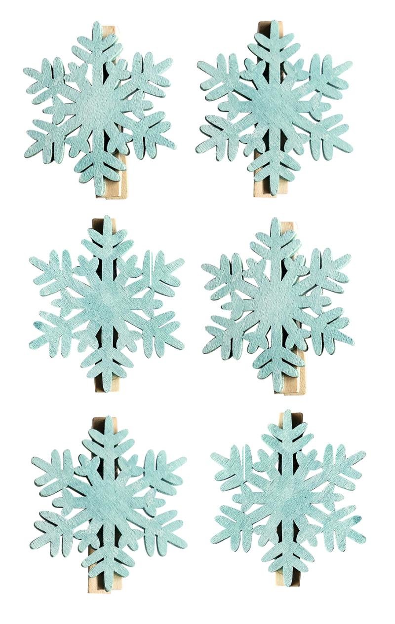 Vločka dřevěná na kolíčku 6 cm (6 ks)