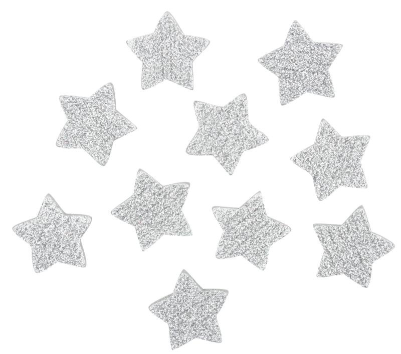 Hvězda stříbrná s lepíkem 5 cm akryl s glitry (10 ks)