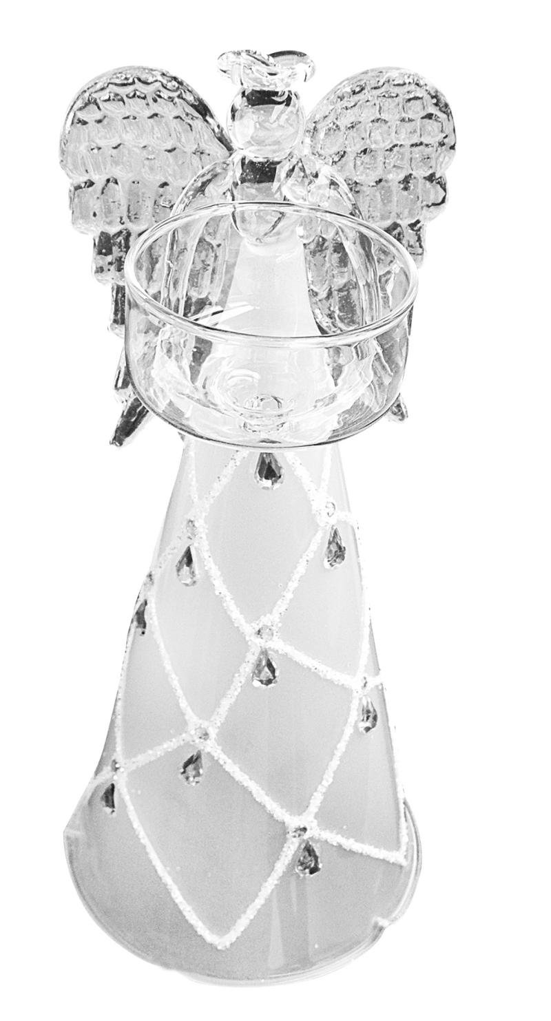 Skleněný anděl 20 cm na čajovou svíčku/bílý