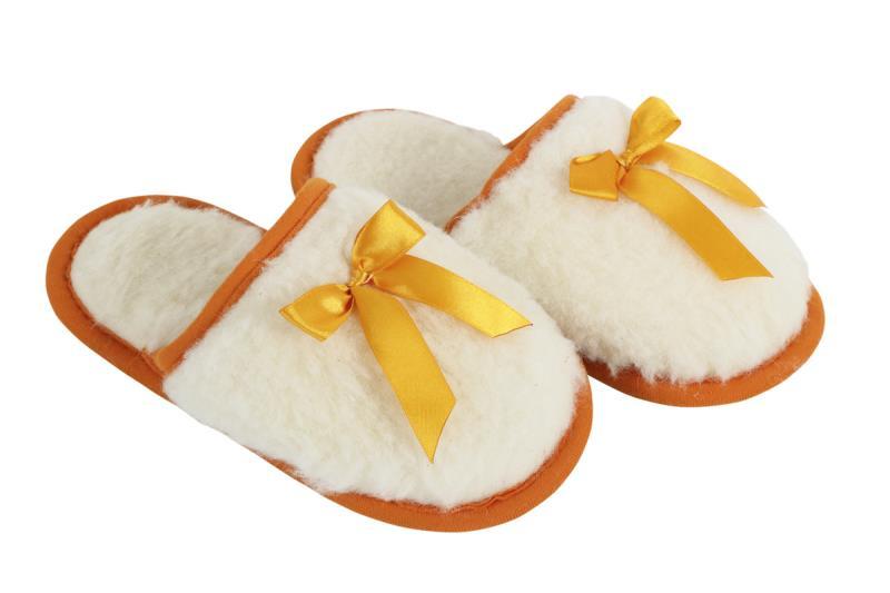 Australské meríno pantofle 520g/m2 - bílý beránek/oranžová stuha - velikost 41-42